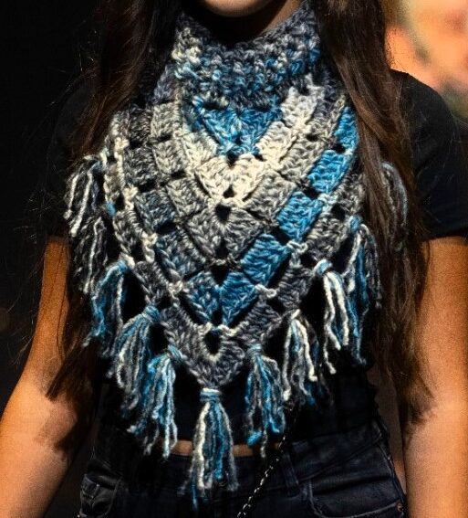 Cuello de ganchillo con un precioso entramado y flecos. Moderno, original, calentito y conjunta con todo.